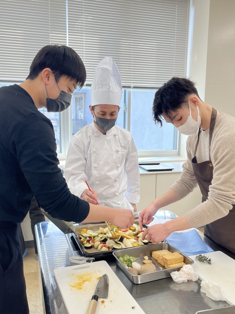 手羽先の香ばしい匂いが漂い、沢山のお野菜と一緒に盛り付けられ、栄養満点なお料理が出来上がりました。厚揚げと豆板醬で炒めたエリンギは、ご飯が何倍も進むくらい、おいしそうでした!