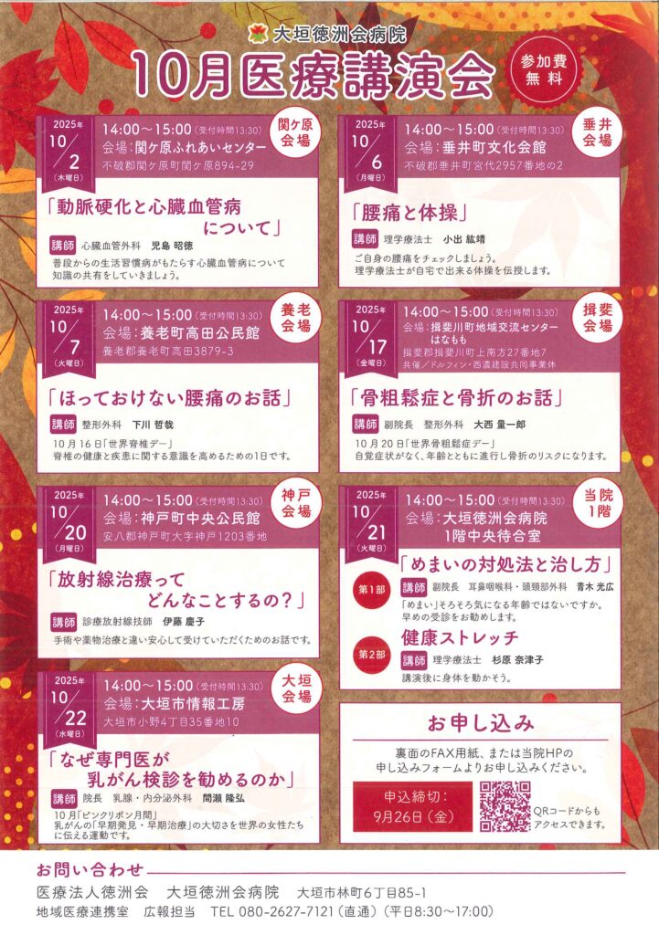 10月の大垣徳洲会病院の医療講演会『骨粗鬆症と骨折』のお知らせです。