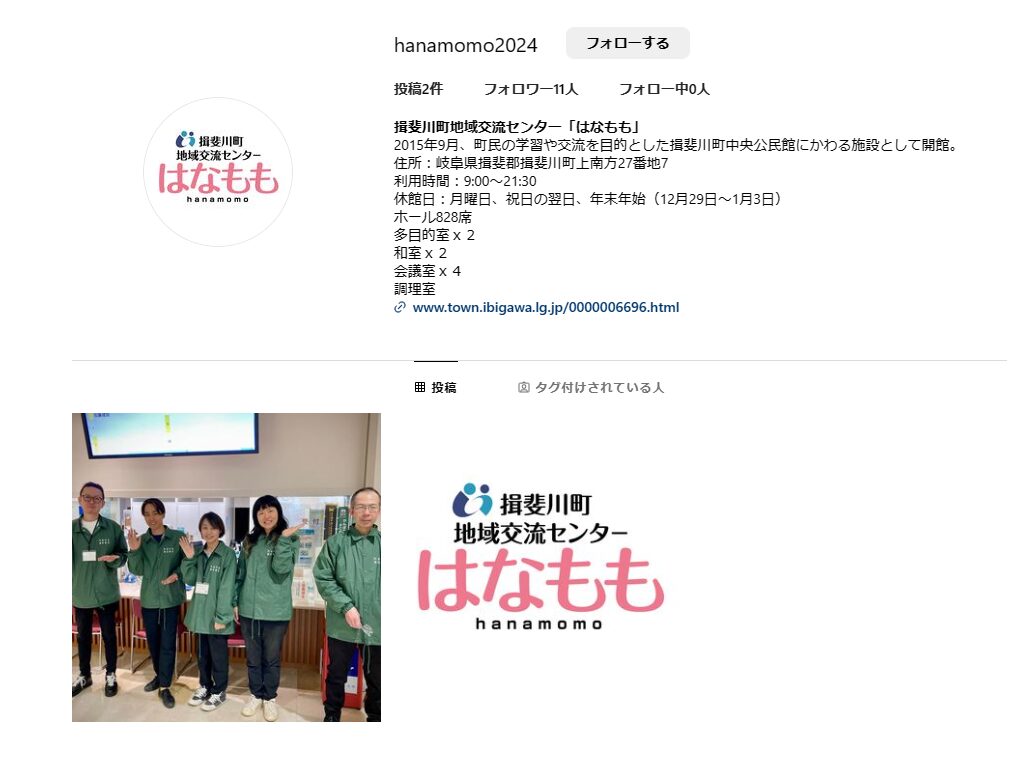 ブログ InstagramとXを始めました! 2024年4月11日 いつも揖斐川町地域交流センター「はなもも」をご利用頂き、ありがとうございます。 この度、InstagramとXを開始しました! 当施設ではダンススクール等の教室、会社の会議等、他にも多ご利用頂ける施設が多種ございます。これから、館内の紹介やイベントのお知らせ等、更新していく予定なのでフォローをよろしくお願いします! はなもものInstagramはこちら→InstagramはなもものXはこちら→X